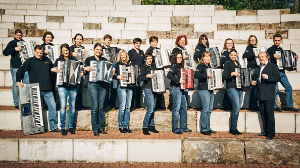 • Der unverwechselbare Sound der Harmonika Big Band wird bei den Jahreskonzerten durch Schlagzeug, Gitarren, Keyboards einer Bläsergruppe sowie Gesang ergänzt.